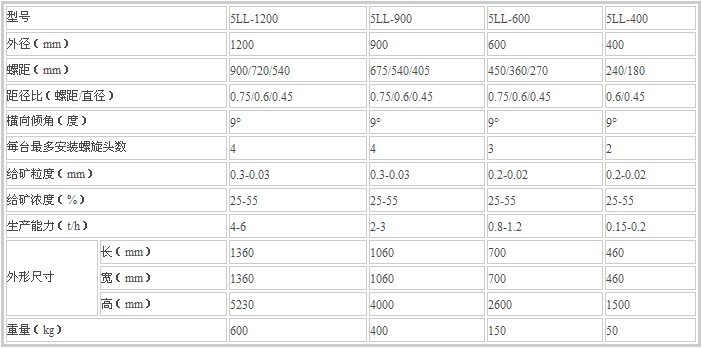 螺旋溜槽适用于分选粒度0.3--0.02毫米细料的铁矿、钛铁矿、铬铁矿、硫铁矿、锆英石、金红石、独居石、磷乙矿、钨矿、锡矿、钽矿、铌矿以及具有比重差异的其他有色金属、稀有金属和非金属矿物体。本设备具有选别过程稳定、容易控制,给矿浓度允许变化范围大,富集比高、回收率高,占地面积小、耗水量少,结构简单,无需动力,处理量大,安装简易,操作方便,投资小见效快等优点。